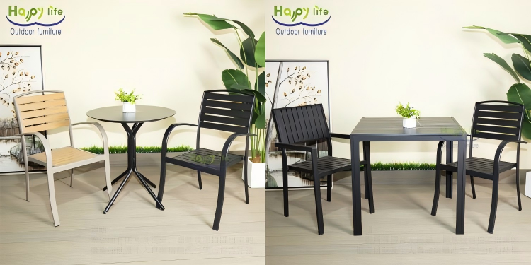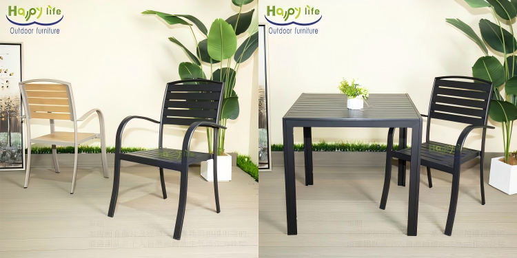 HLO-052 Outdoor Cafe Chair Stackable Aluminum Frame Plastic Wood Seat WPC Garden Patio Bistro Chair