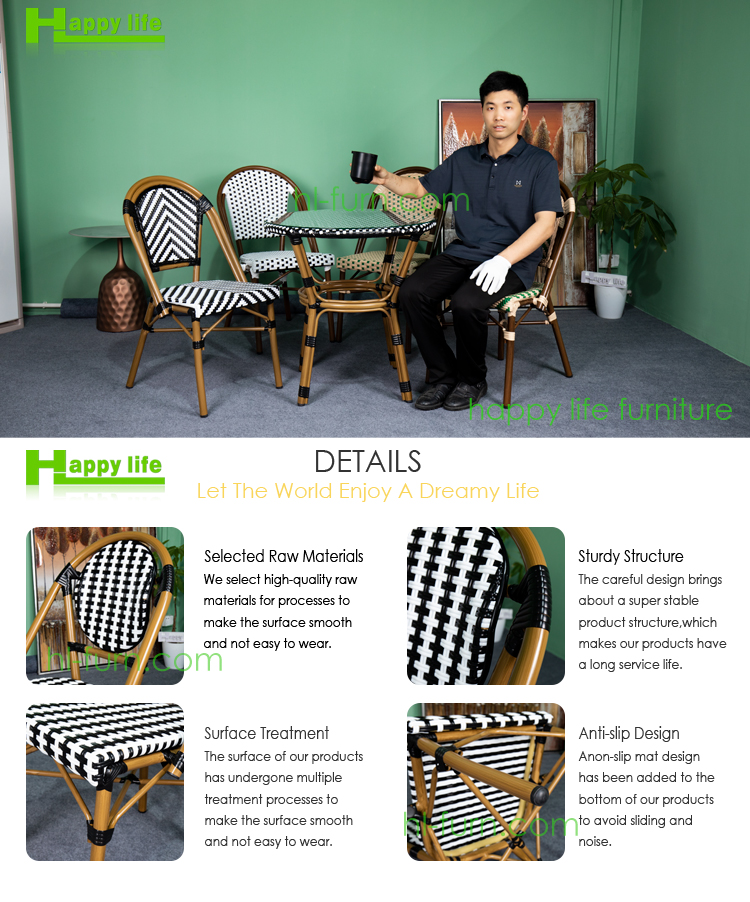 HLO-002 French Bistro Chair PE Rattan Stackable for Outdoor Cafe Restaurant