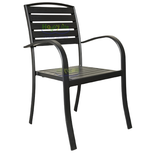 HLO-052 Outdoor Cafe Chair Stackable Aluminum Frame Plastic Wood Seat WPC Garden Patio Bistro Chair